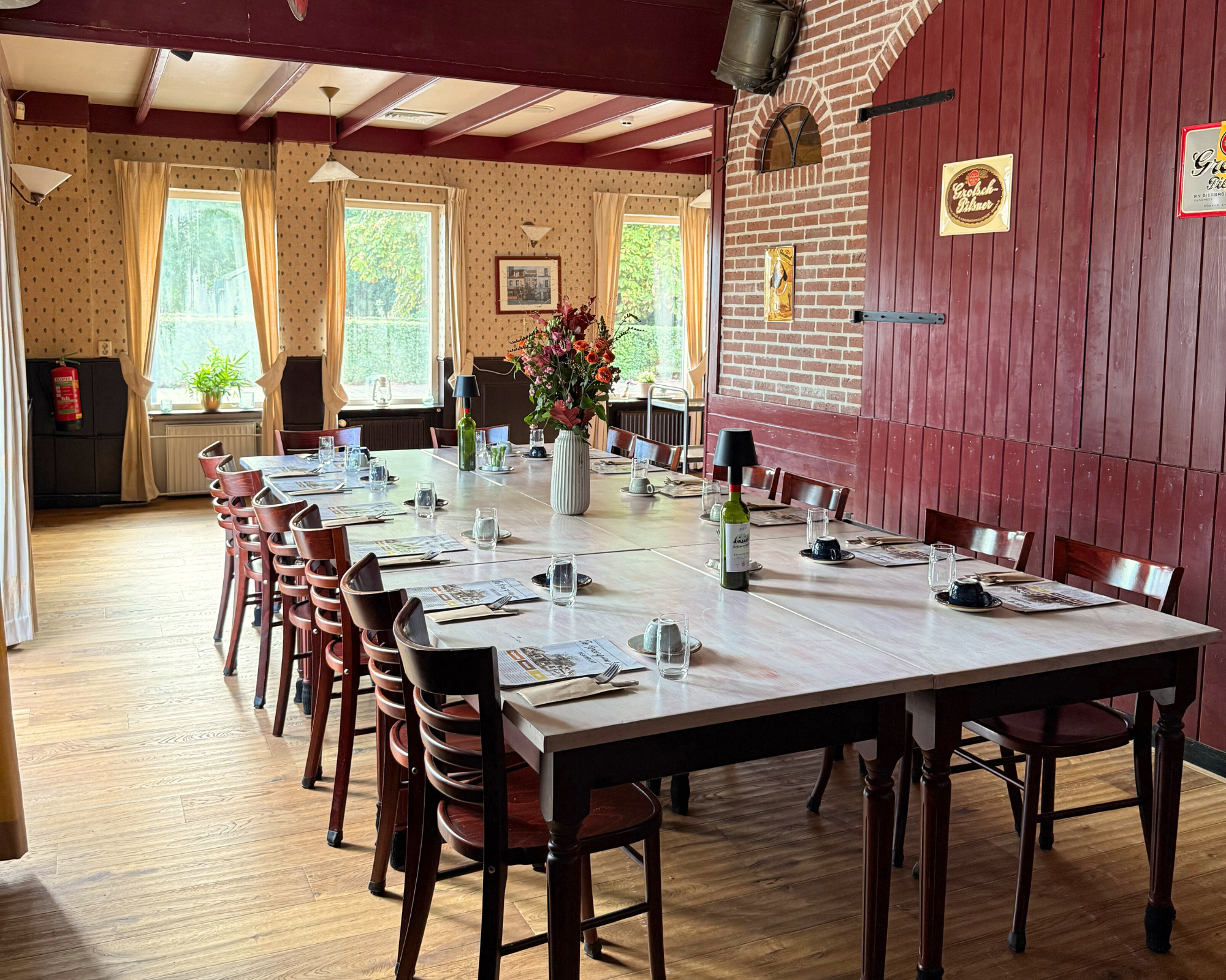 Bij De Herberg van Loon kun je een sfeervolle vergaderruimte huren voor verschillende zakelijke bijeenkomsten. Onze locatie is ideaal voor organisaties die op zoek zijn naar een rustige, warme en professionele vergaderlocatie waar zowel kleine als middelgrote groepen comfortabel kunnen samenkomen. De vergaderruimte bevindt zich aan de achterkant van ons restaurant en biedt een prettige, afgesloten omgeving voor vergaderingen, trainingen, workshops en creatieve sessies.