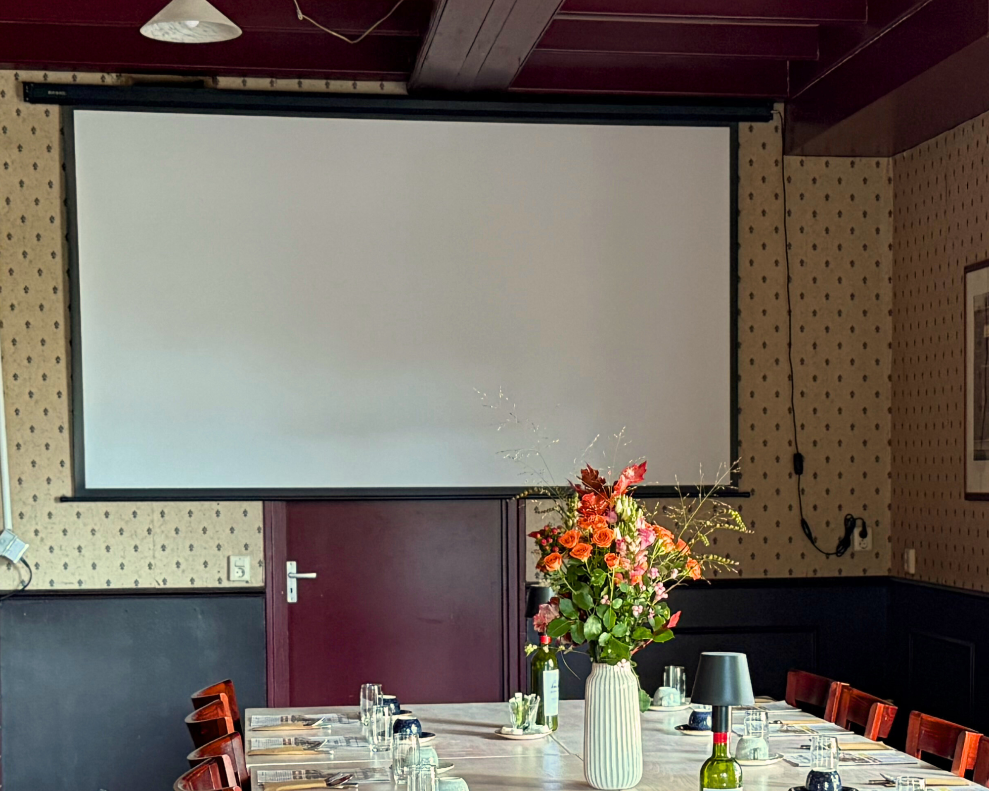 Onze vergaderruimte kan volledig worden ingericht op basis van jouw wensen. Of je nu kiest voor een U-opstelling, theateropstelling, boardroomstijl of groepsopstelling: we helpen je graag bepalen welke indeling het beste past bij jouw bijeenkomst.